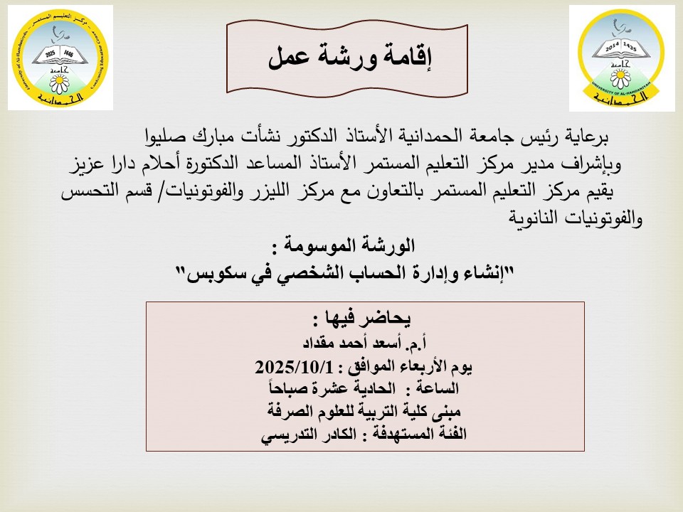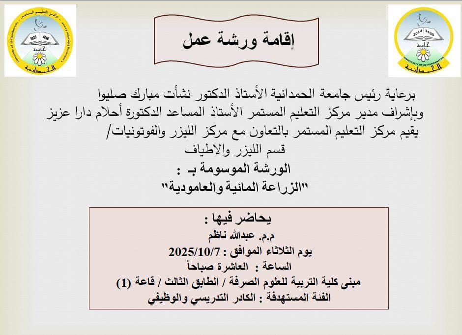 إعلانات ورش ودورات مركز الليزر والفوتونيات