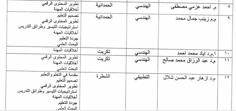 حاصل على شهادة “مدرب في طرائق التدريس للتخصص الهندسي” ضمن الدورة الوزارية السابعة لـ”إعداد المدربين TOT في طرائق التدريس وفق المنهاج المحدث“، التي أُقيمت ضمن مشروع البرنامج الحكومي لتطوير التعليم العالي في العراق، بإشراف وزارة التعليم العالي والبحث العلمي – دائرة الدراسات والتخطيط والمتابعة.