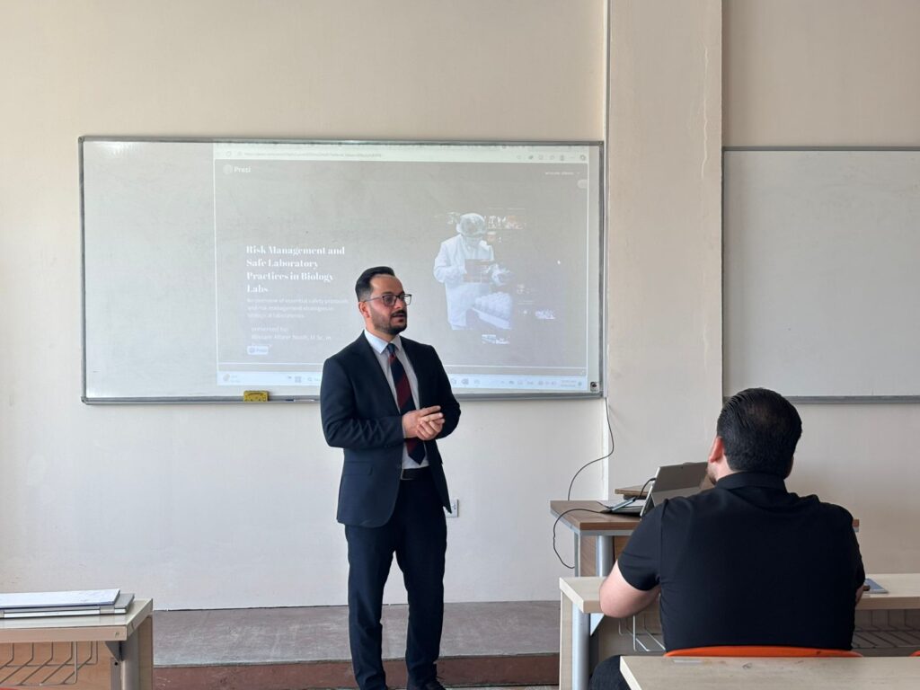يذكر ان الدورة استمرت لمدة خمسة أيام من 5/10/2025 ولغاية 9/10/2025، وهدفت إلى تعزيز وعي المشاركين بمبادئ السلامة والأمن البيولوجي، وكيفية الوقاية من التلوث، وفصل النفايات بشكل آمن، وتقييم المخاطر، فضلاً عن التعامل السليم مع المواد الخطرة على وفق المعايير الدولية لضمان بيئة عمل آمنة ومستدامة.